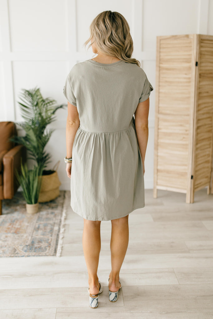 A dress is the most effortless way to feel trendy, comfortable, and confident. ItIt's got top and bottom covered so that all you have to think about is how you're going to accessorize it! This dress features a v-shaped neckline, functional buttons, and functional pockets.