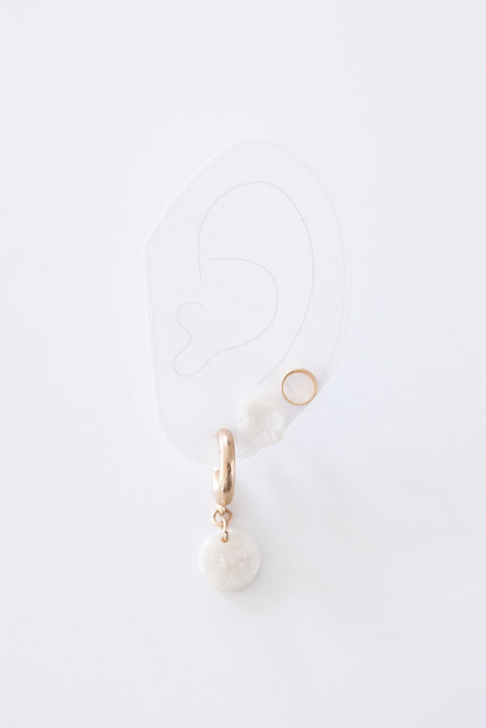 Third Pair: Gold Hoop with Round Milky Pearl Pendant