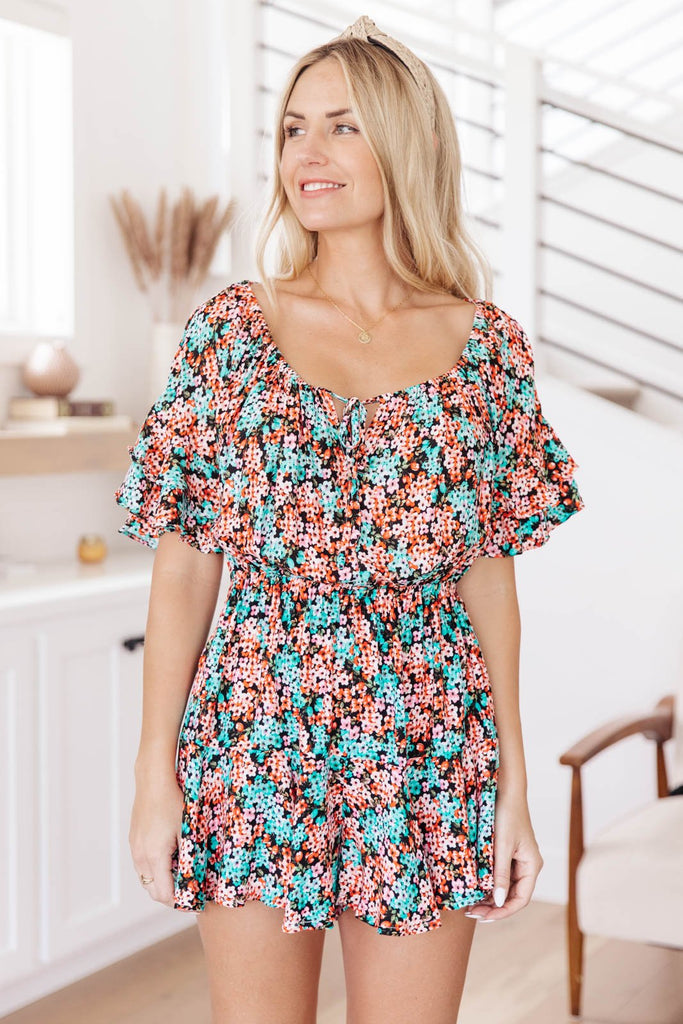 Featuring pink and blue floral print, the Alexandra Romper is a fun and trendy statement piece to spice up your summer wardrobe. Featuring an elastic neckline, this romper can be worn comfortably on or off the shoulders and the tiered sleeve adds a flirty, feminine touch. Pair this with your favorite wedges and gold hoop earrings for Sunday brunch, date night, or a trip to the grocery store! We love any excuse to dress up!