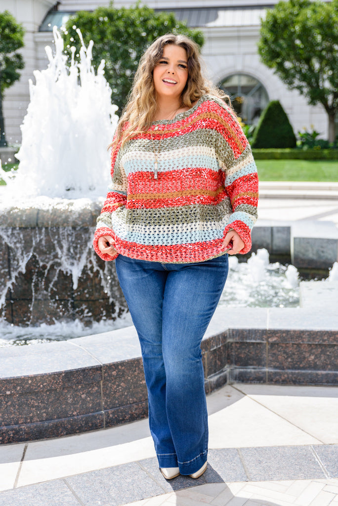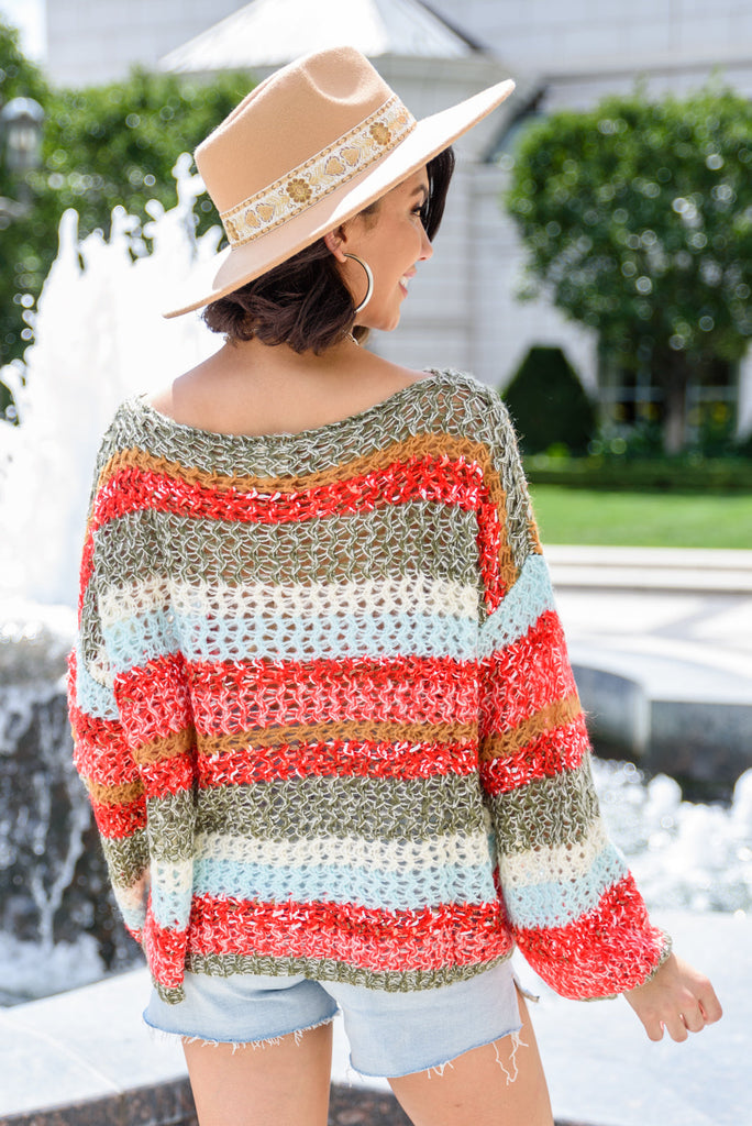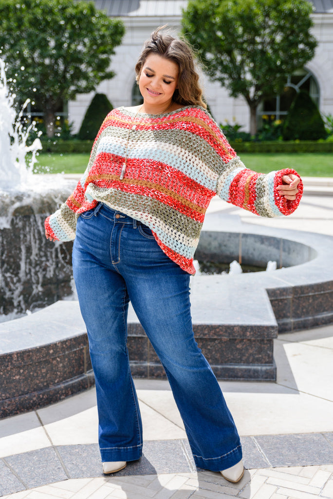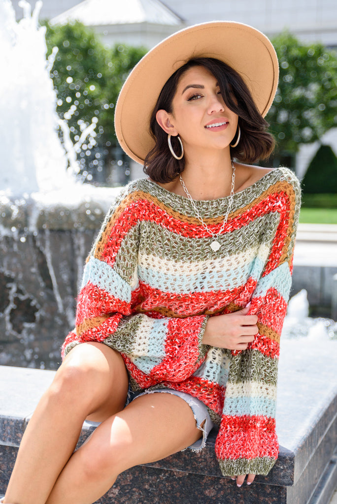 We are so ready to get cozy and cute in the All Cozied Up Sweater! This stunning piece features a crochet inspired knit that shapes a boat neckline, with a drop shoulder that falls into oversized long sleeves and a slouchy, slightly cropped silhouette. This adorable sweater looks amazing with distressed denim shorts, chunky boots, and a wide brim hat!