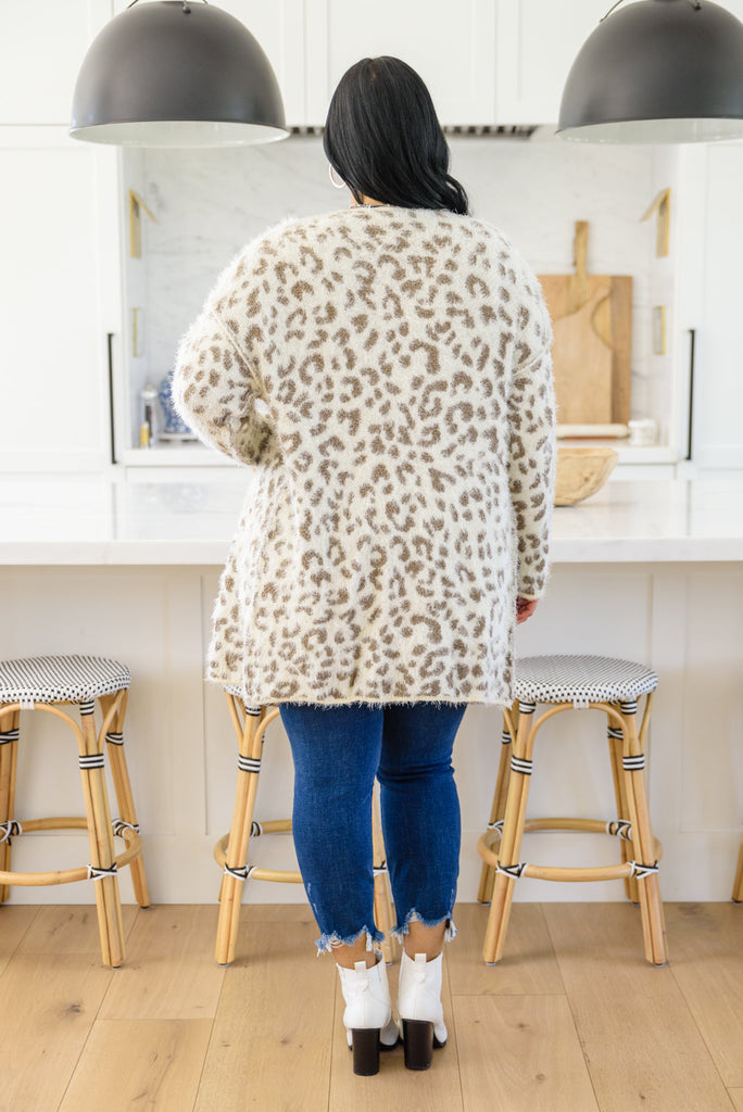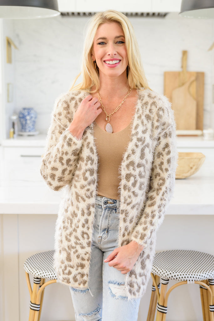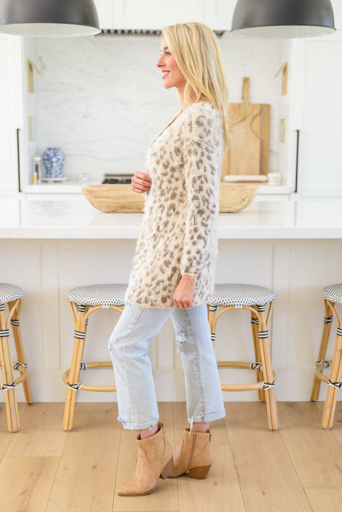 All Love Fuzzy Eyelash Knit Animal Print Cardigan