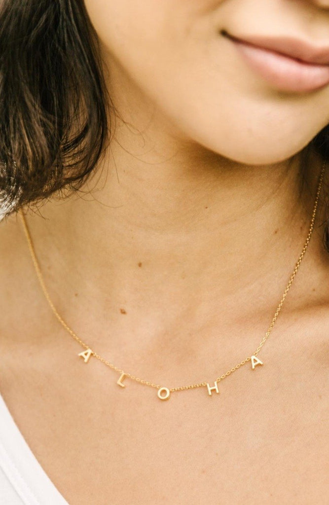 Say aloha to your new favorite necklace for a tropical vacation. Available in silver and gold, this dainty letter charm necklace will get you in the mood for beaches and sunshine every day.