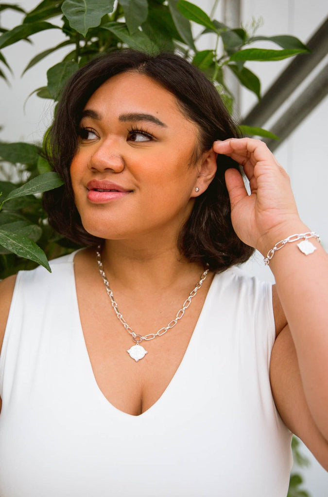 A chain link style bracelet with a vintage inspired coin charm. The perfect bracelet to add a splash of boho to your look.