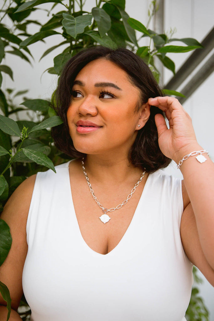 A chain link style necklace with a vintage inspired coin charm. The perfect necklace to add a splash of boho to your look.