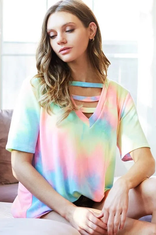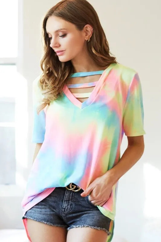 BiBi Tie-Dye V-Neck Short Sleeve T-Shirt