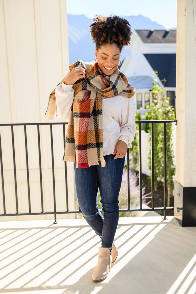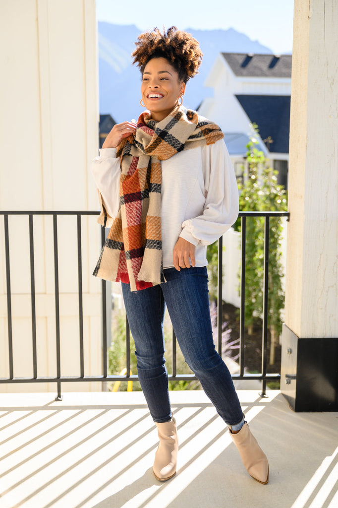 - Knitted Fuzzy Pom Pom Scarf In Beige