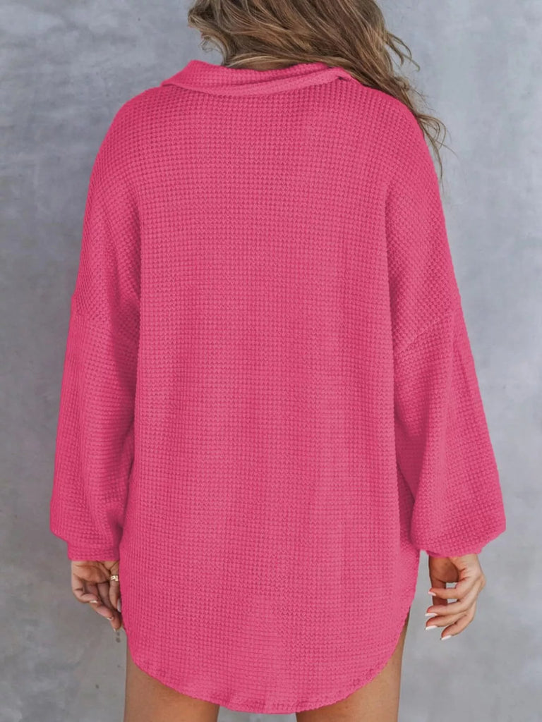 Casual Waffle Knit Button Detail Blouse - 11 color options!