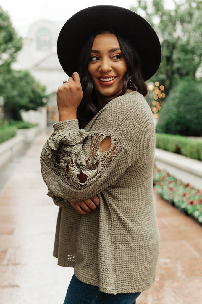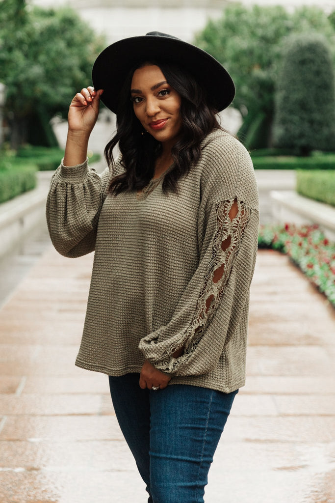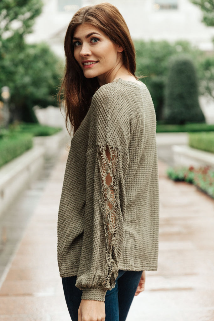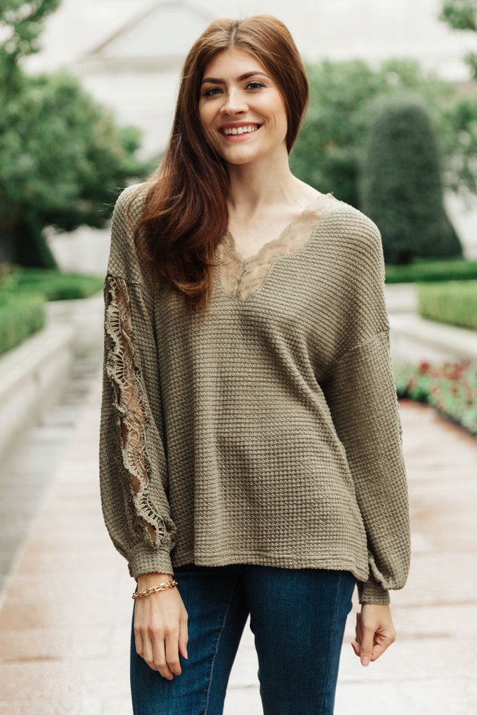 Keywords: Long Sleeve Top, Lace Top, Olive Top, Fall