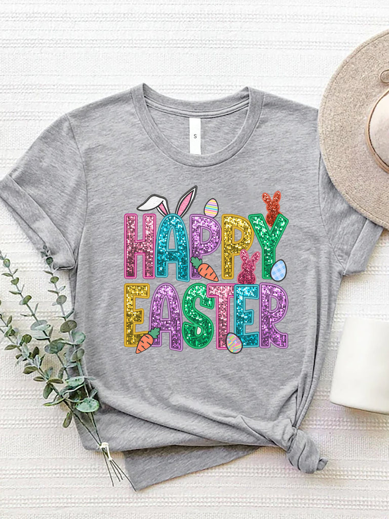 HAPPY EASTER Round Neck Short Sleeve T-Shirt - 7 color options
