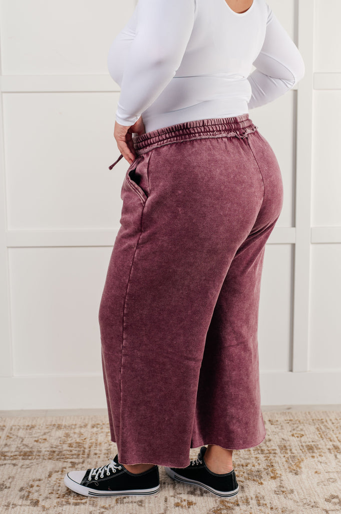 In or Out Wide Leg Cropped Pants in Eggplant