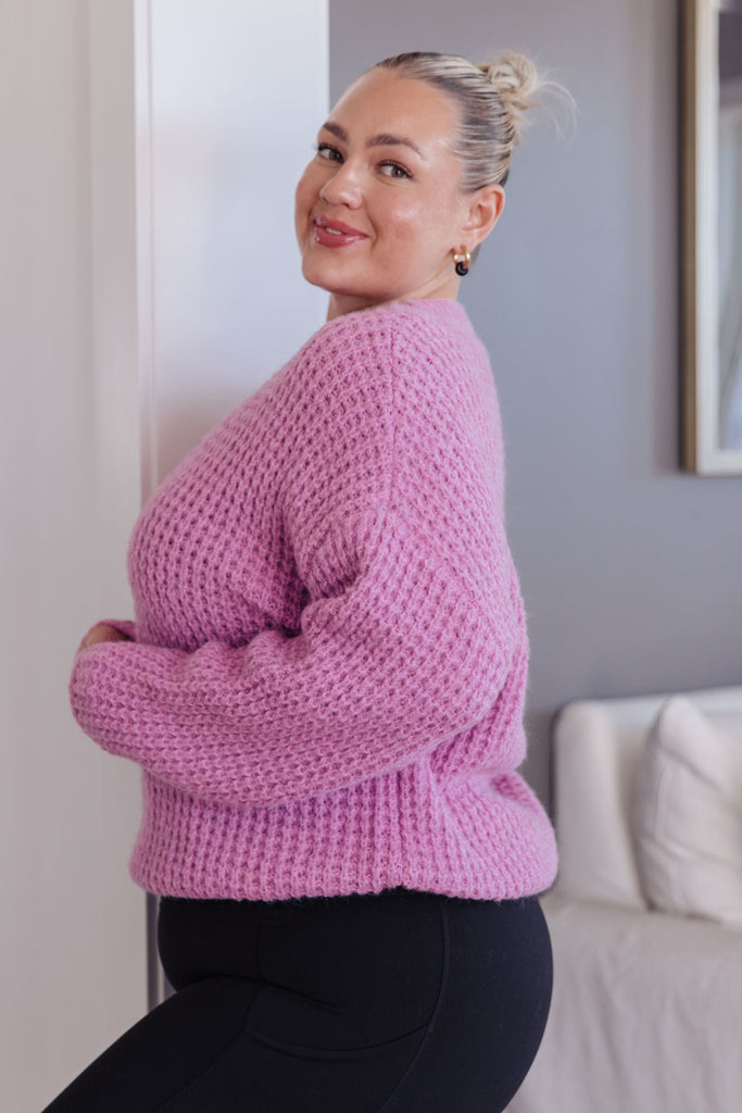 Stay cozy and stylish in this Little Knitter Sweater. Crafted from a mid-weight waffle knit fabric, this classic round neckline sweater features a rolled hem for a polished look. Enjoy the perfect cool-weather layer in style.