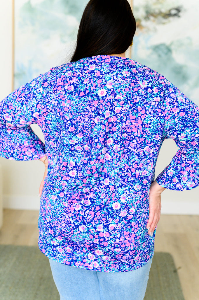 Lizzy Bell Sleeve Top in Navy and Pink Floral
