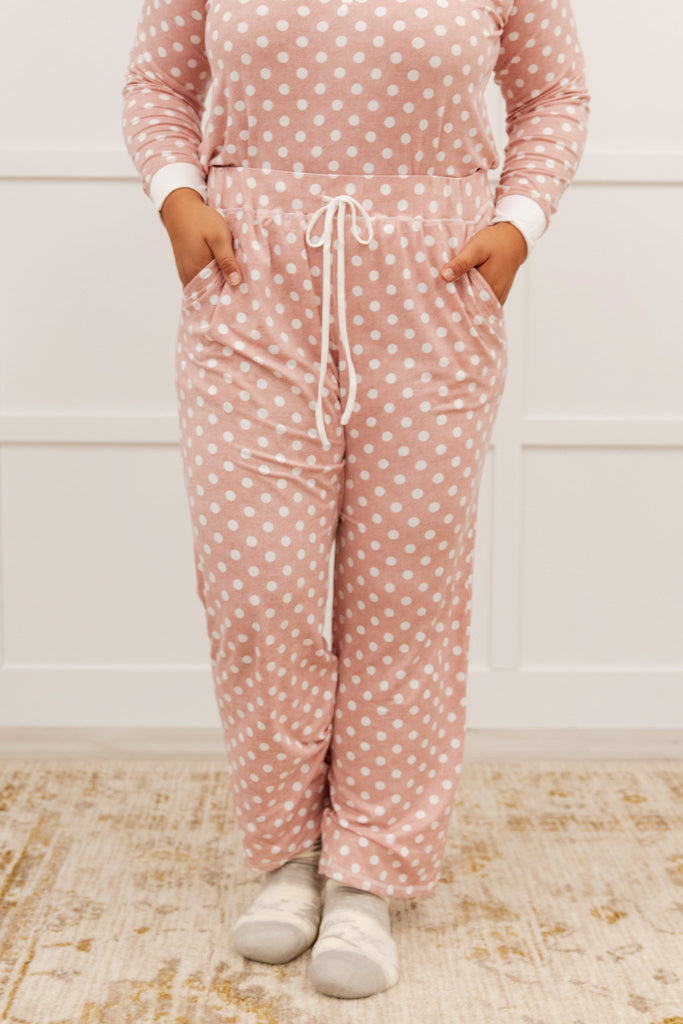 Keywords: Pink Top, Polka Dots, Lounge Set, Loungewear