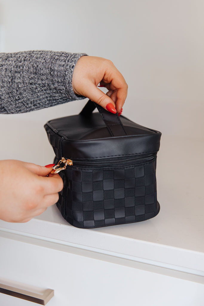 Subtly Checked Cosmetic Bags 3 Piece Set in Black