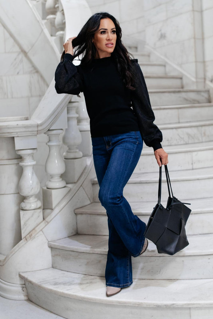 Keywords: Black Top, Long Sleeve Top, Puff Sleeve