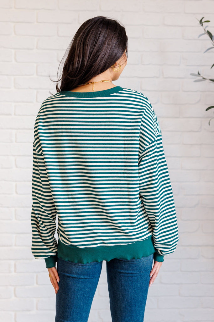 Too Good to be True Striped Drop Shoulder Top in Green