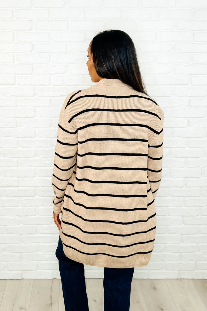 The Under Wraps Striped Cardigan is the perfect layer for breezy days and cool nights. Made from soft mid-weight sweater knit, it features an open front design and a cozy shawl neckline that drapes effortlessly. Functional patch pockets add a practical touch while keeping the look relaxed and chic. With its classic stripes and easy fit, this cardigan is the ultimate throw-on-and-go piece for any season.
